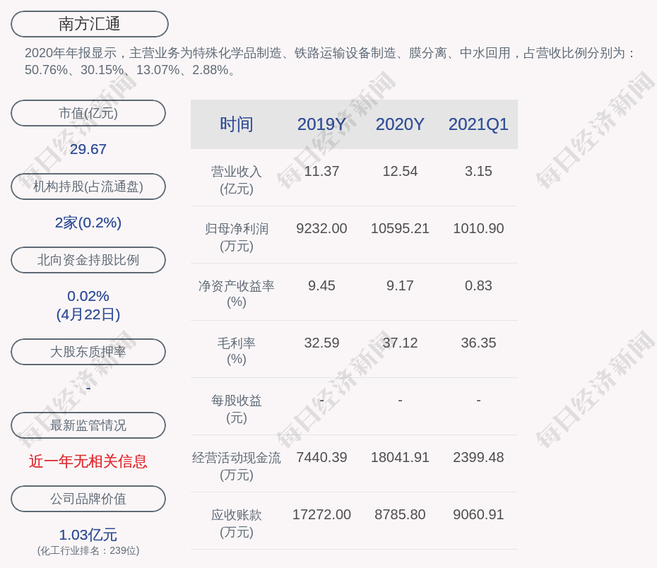大捷!南方汇通:2021年第一季度净利润约1011万元,同比增加501.47% - 每日经济新闻