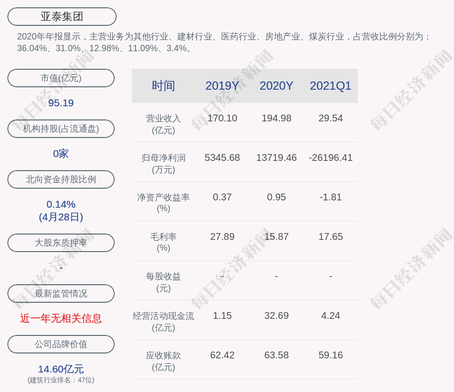 亚泰集团:2021年第一季度净利润亏损约2.62亿元,同比增加4.28% | 每经网 - 每日经济新闻