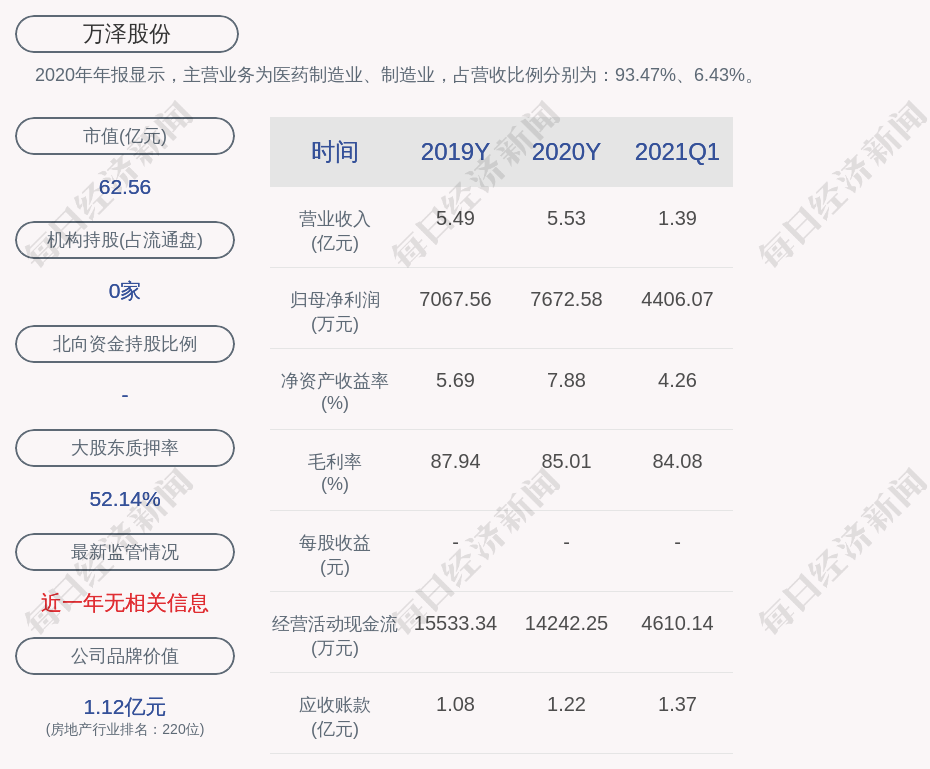 万泽股份:2021年第一季度净利润约4406万元,同比下降2.36% | 每经网 - 每日经济新闻