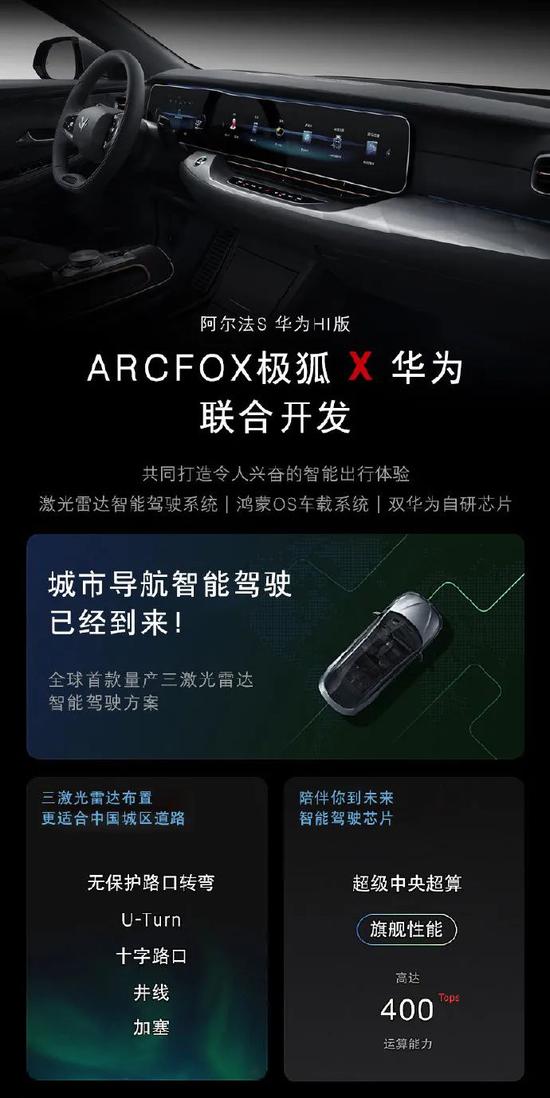 此外,搭载华为智能驾驶功能的极狐阿尔法S华为HI版车型开启预售,基础版预售38.89万元,高阶版预售42.99万元,预计今年11~12月份交付。