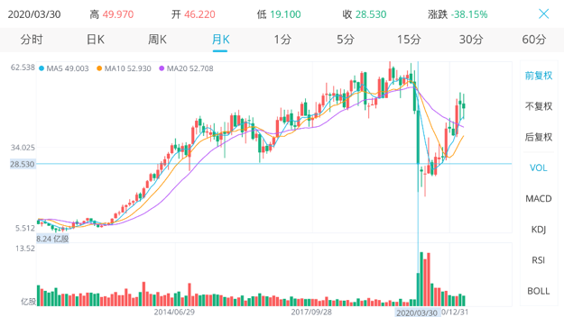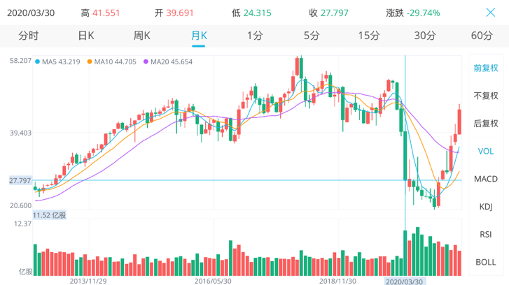 再看一下达美航空股价的走势,根据巴菲特的公告,我们大体可以估算出巴菲特减持的价格大体在20到26美元之间,今天最新的达美航空股价已经到了46块钱。