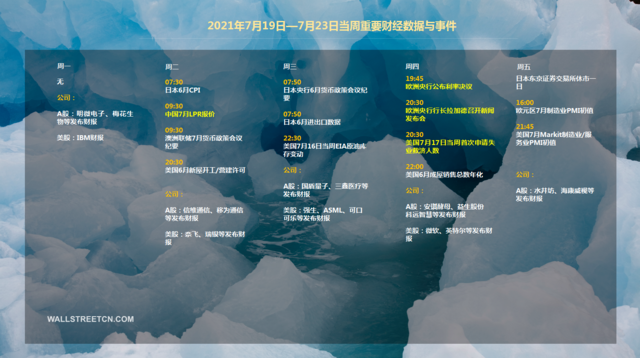 7月19日至7月25日当周重磅财经事件一览,以下均为北京时间: